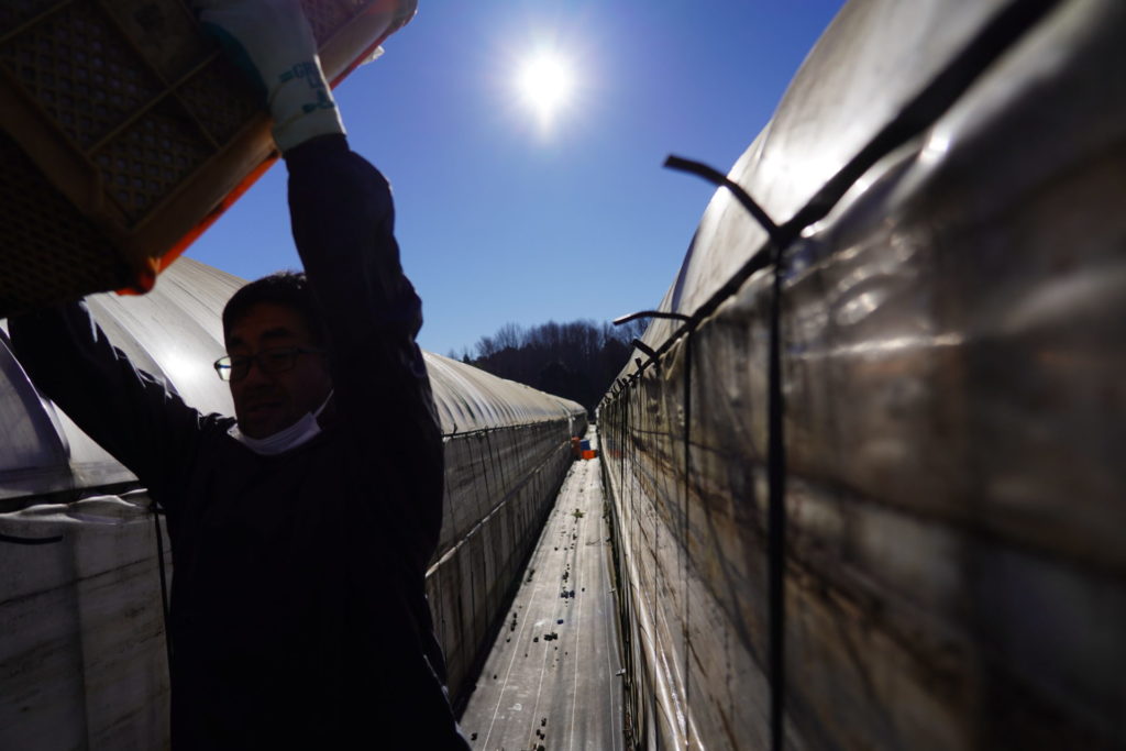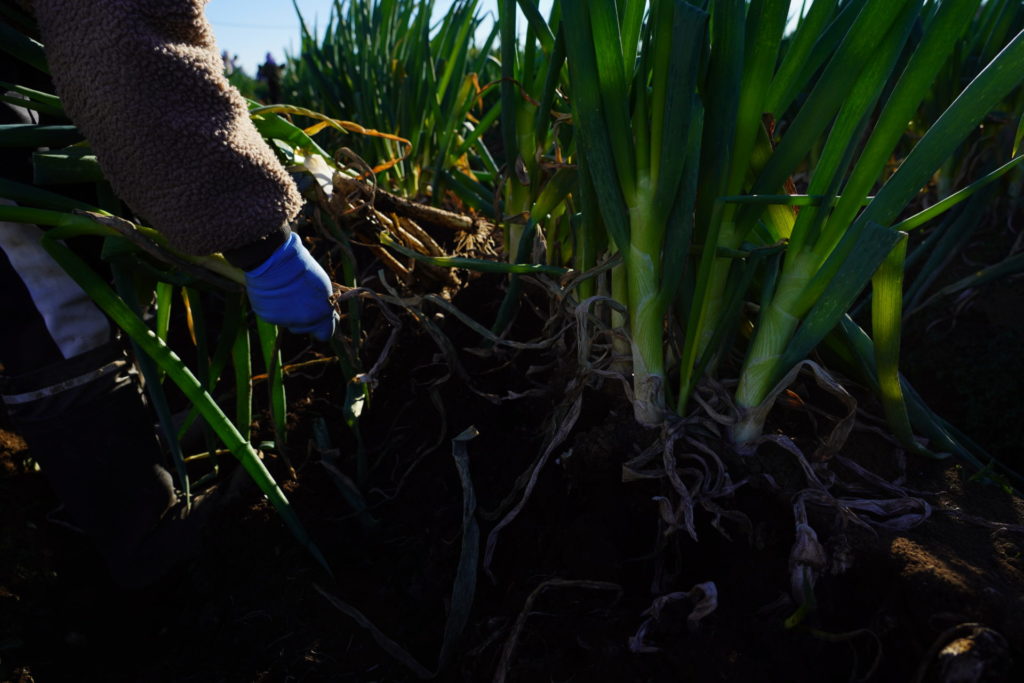 今日も長ネギ抜きから始まり、その後、みんな各ハウスや露地に分かれて収穫です。今日も都会へ美味しい野菜を届けまーす(^^)/。