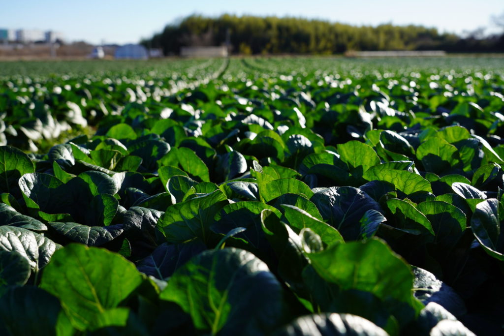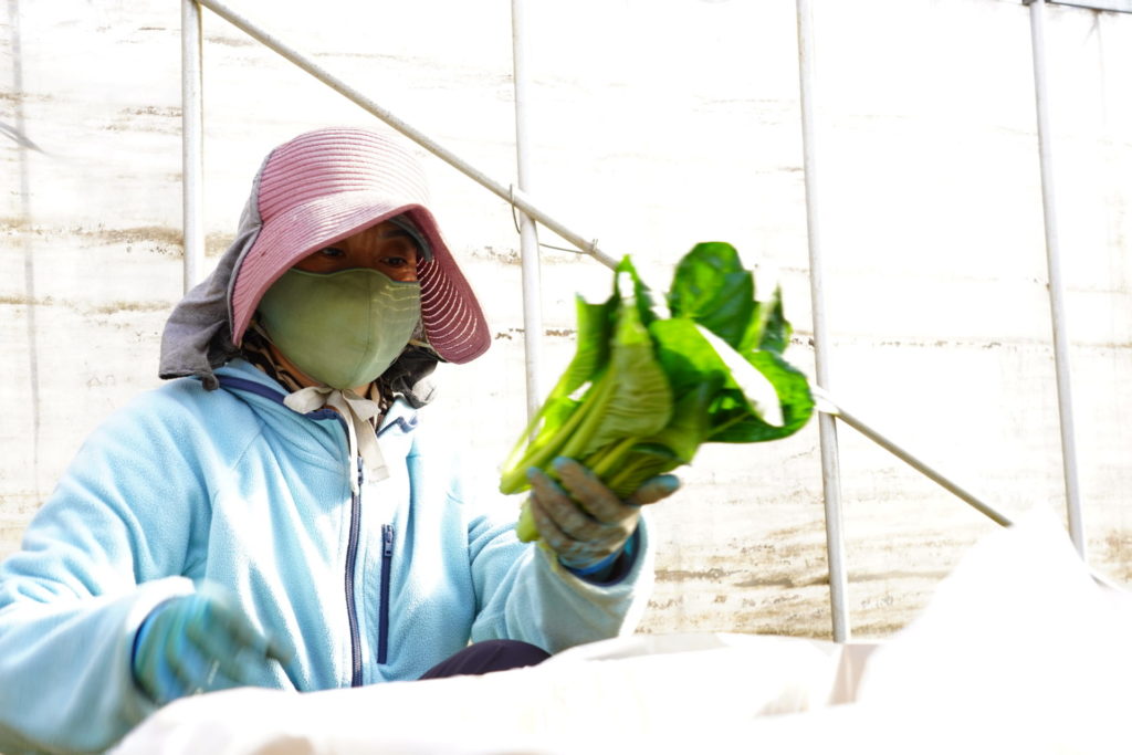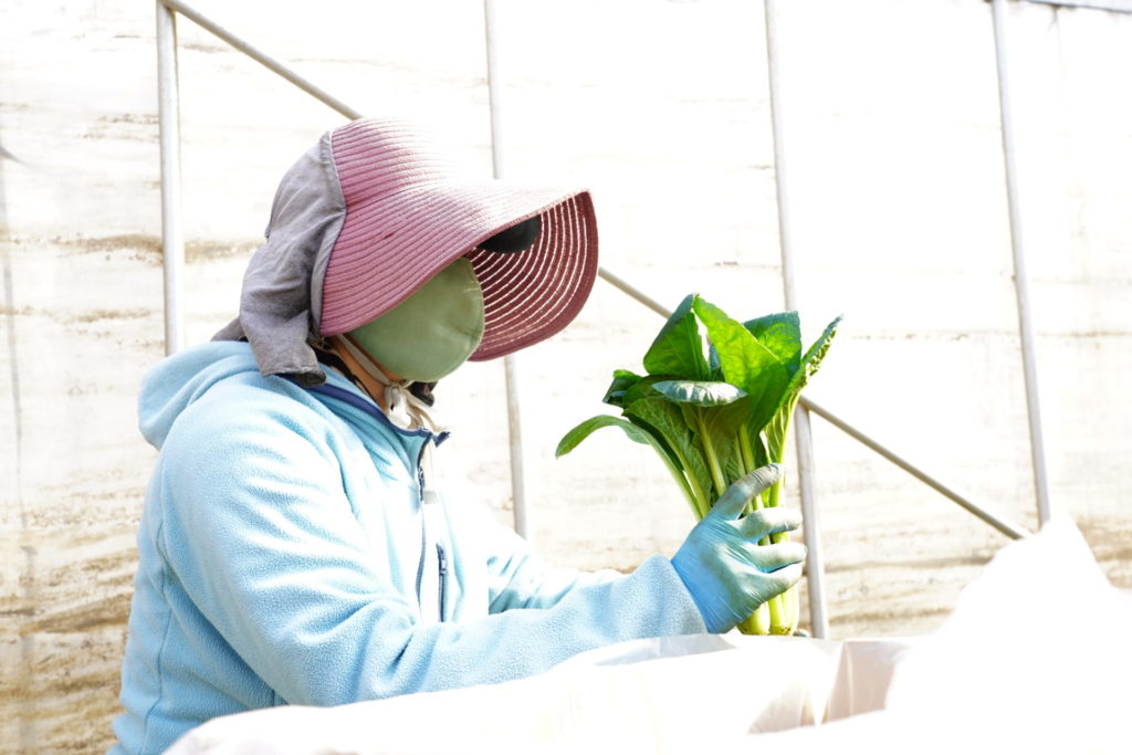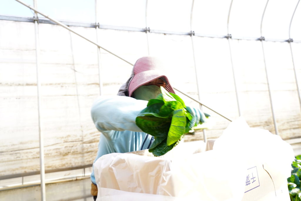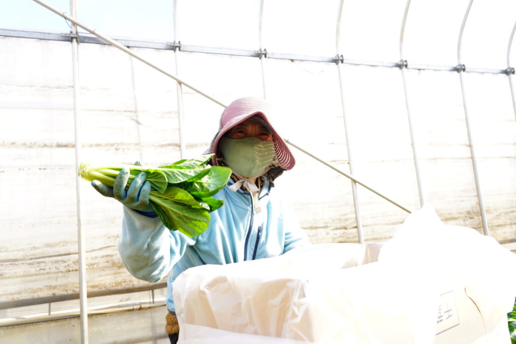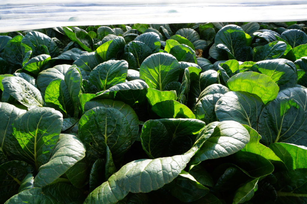 小松菜もすごく綺麗!ただアブラムシが多少いますので、丁寧にチェックして出荷しています。