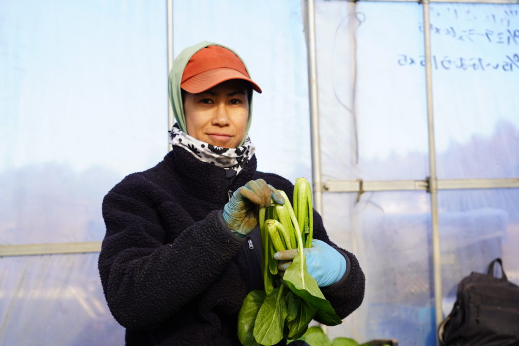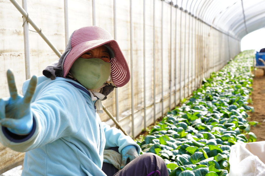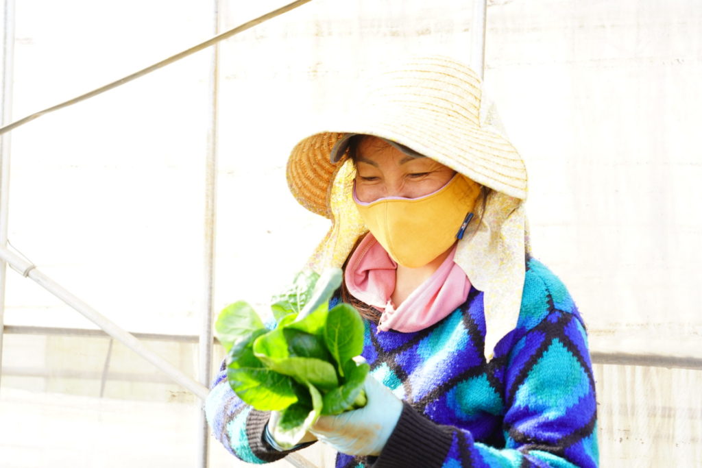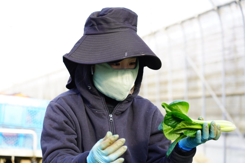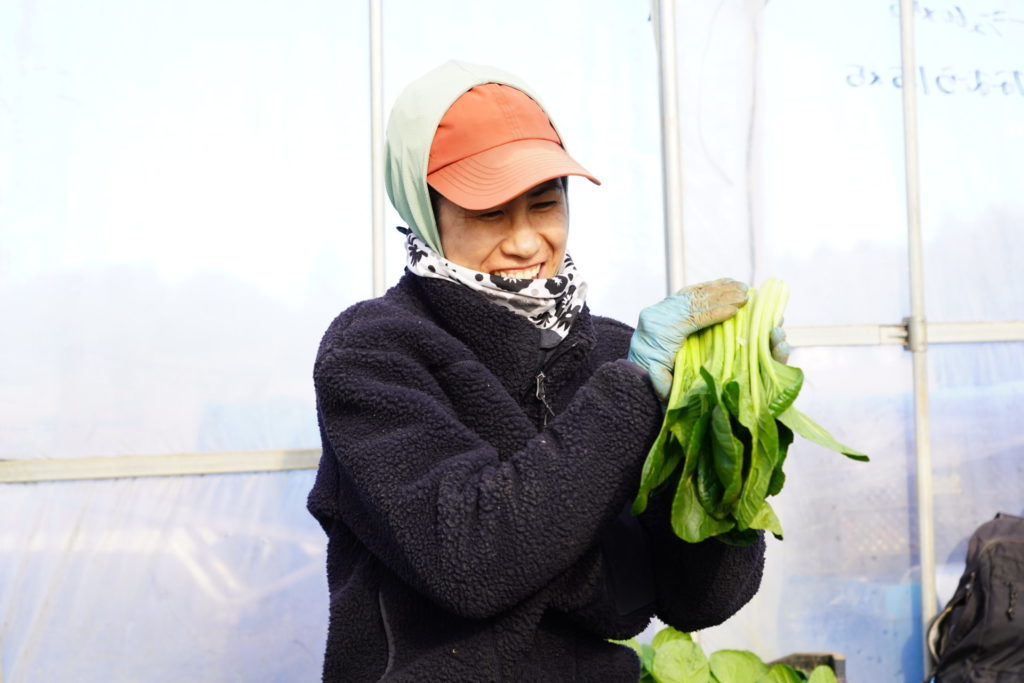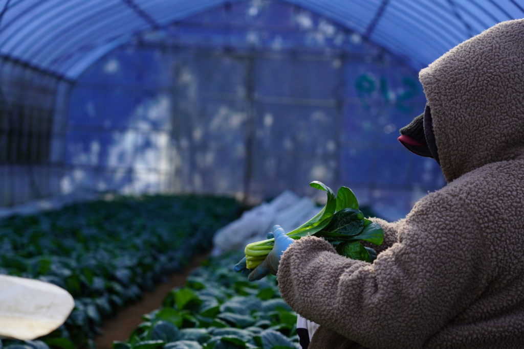 小松菜もすごく綺麗!ただアブラムシが多少いますので、丁寧にチェックして出荷しています。