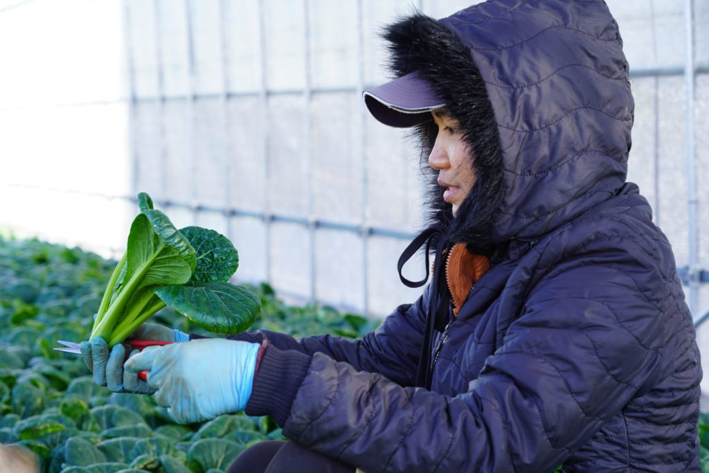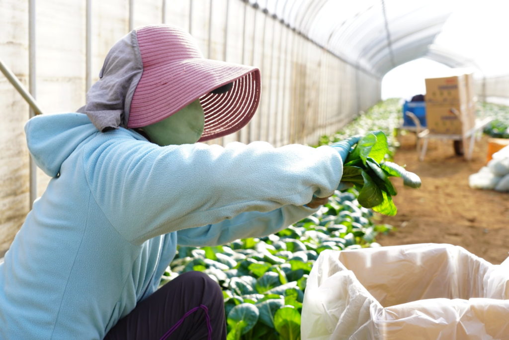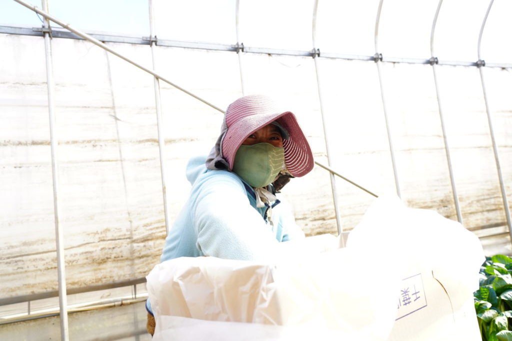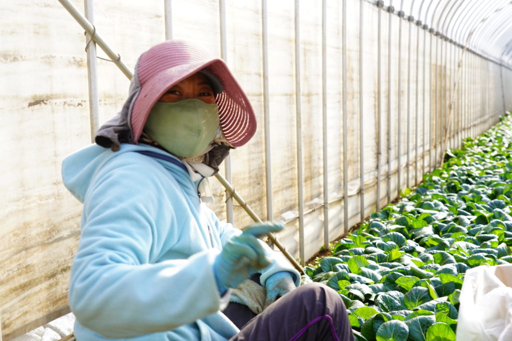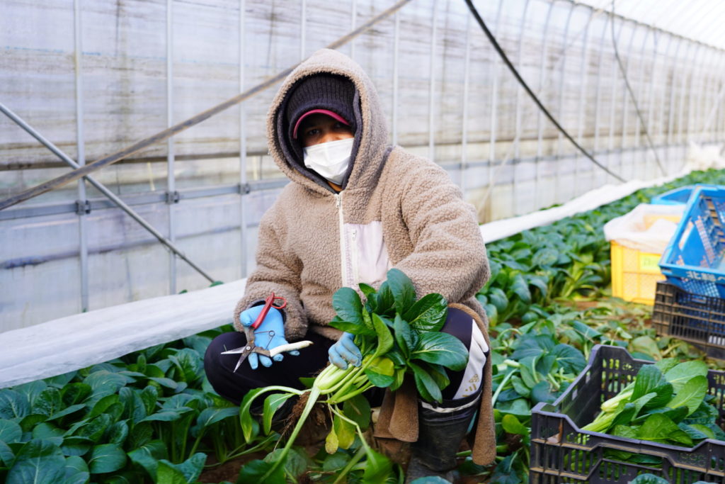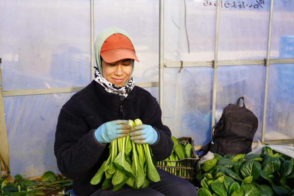 小松菜もすごく綺麗!ただアブラムシが多少いますので、丁寧にチェックして出荷しています。